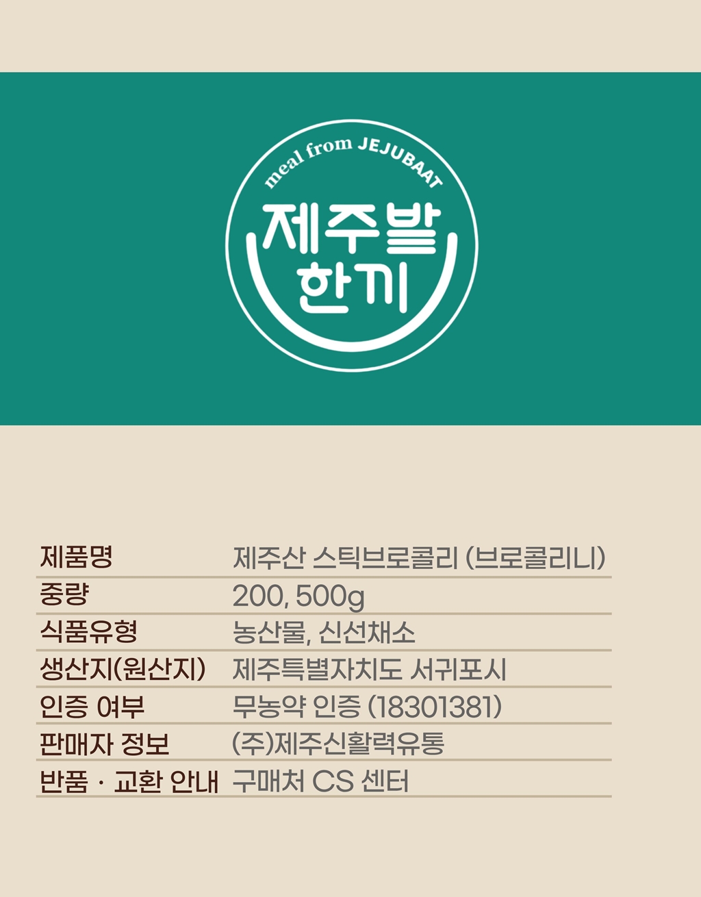 [신활력유통] 제주산 무농약 인증 스틱 브로콜리(200g,500g)