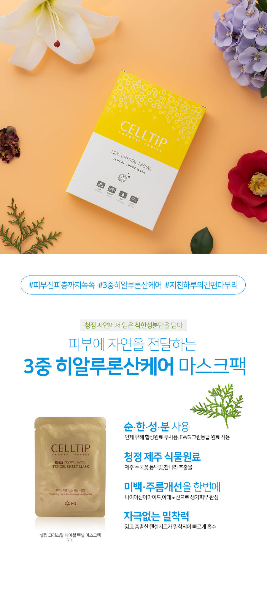 [엠제이주식회사] 셀팁 크리스탈 페이셜 텐셀 마스크팩(24ml*7ea)